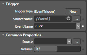 The Common Properties section is about setting the properties for sound. To set a sound, either select it from the dropdown (for the sounds already added in the project), or press the ellipsis button to browse and select from local disk. Quieter sounds can be made louder by setting the Volume to a higher value (and opposite).