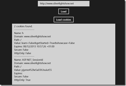 If we now want to get access to the cookies that were sent to the device when making the request, we can again use the HttpClient class which now gives access to this collection. In the screenshot below, we can see the cookies being read.